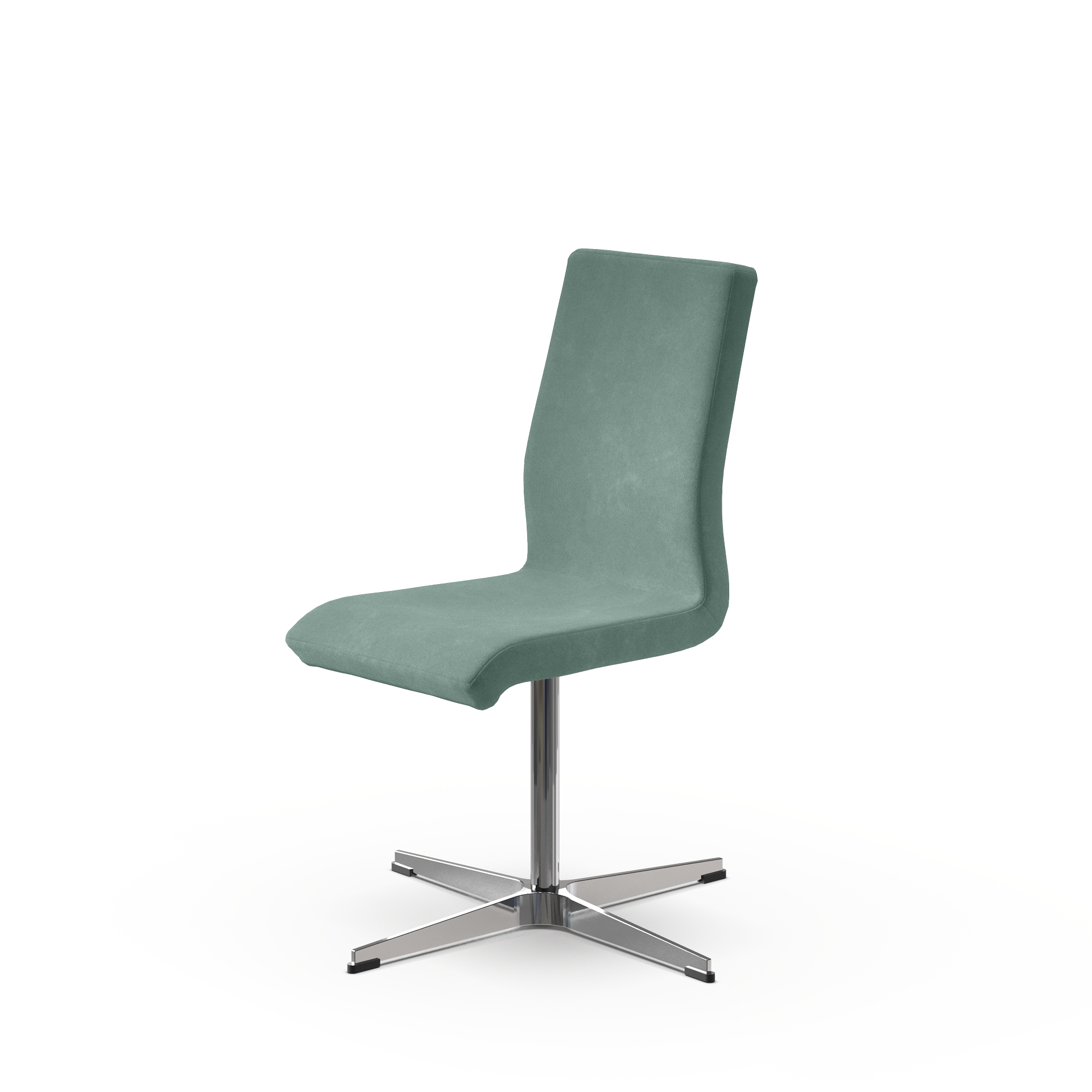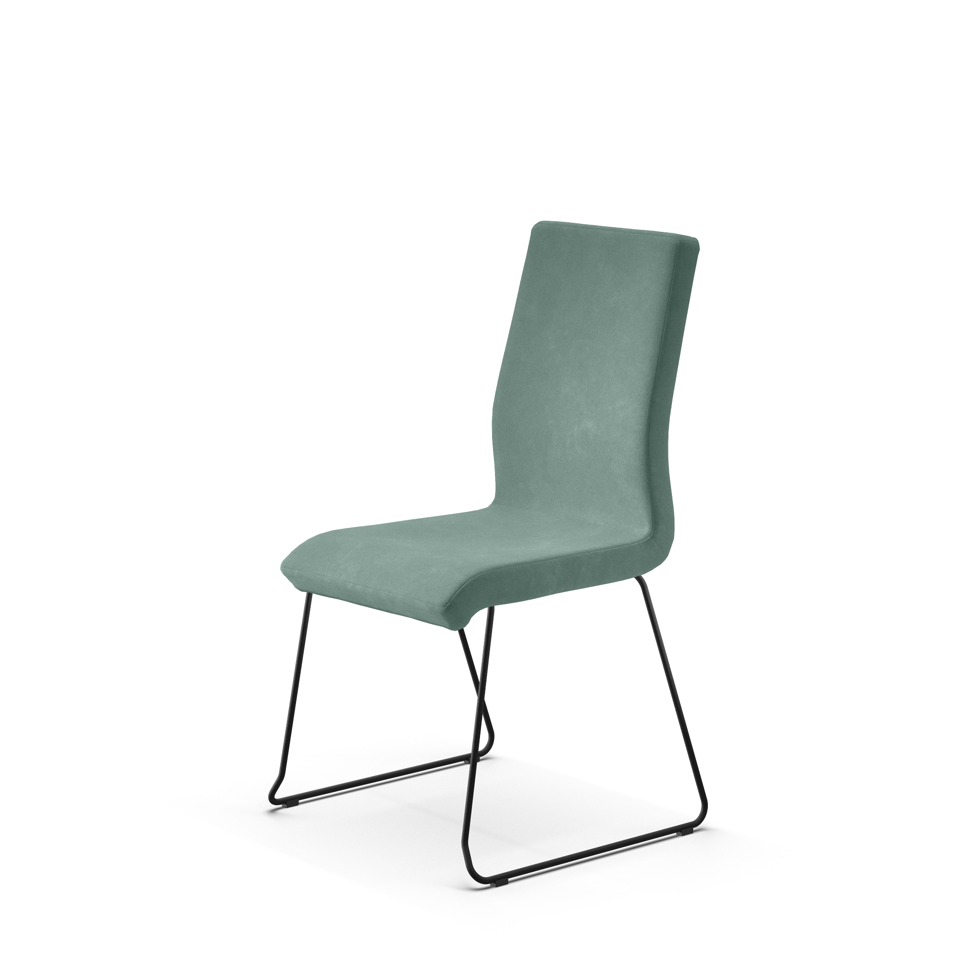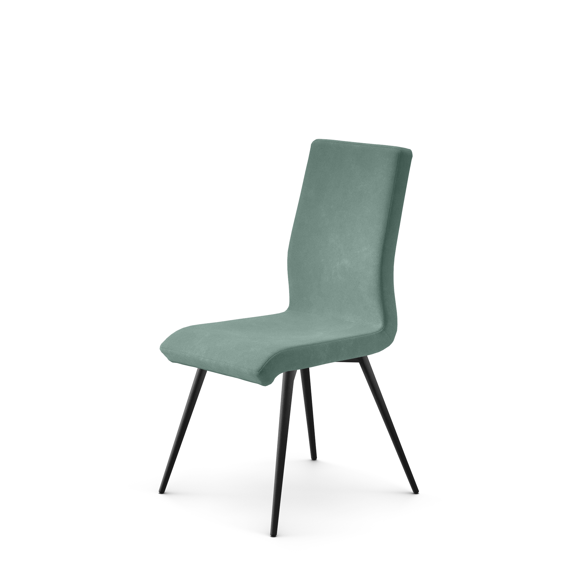 Sedia con scocca in multistrati di faggio, rivestita in gomma poliuretanica e tappezzata in stoffa, velluto, finta pelle e vera pelle bovina di origine italiana. Disponibile con molteplici basi ed in vari materiali e finiture. La parte posteriore dello schienale puo’ essere trapuntata.